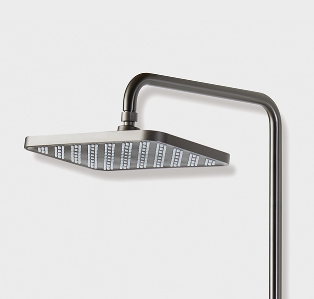 紳士灰色霧面質感,龍頭主體為平台設計,可設定好固定水溫,每次使用僅須一鍵開水,即可享受舒適淋浴體驗。